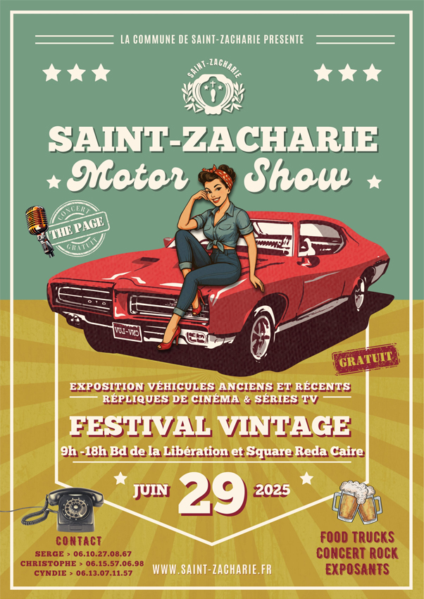 Festival annuel vintage avec exposition de véhicules anciens et récents La Commune de Saint-Zacharie a le plaisir de vous annoncer la prochaine édition de leur festival Motor Show le 29 juin 2025 dè 09h00 sur le Boulevard de la Libération et le Square Reda Claire à Saint-Zacharie (83). Ce concentration réunit des véhicules anciens et récents dont un espace sera réservé aux répliques cultes de voitures du cinéma et des séries TV. Diverses animations sont prévues dont un concert gratuit de rock ainsi que des stands d'exposants. Restauration via des food-trucks sur place. Entrée gratuite.